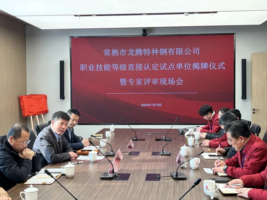 1月10日,龍騰特鋼隆重舉行常熟市龍騰特種鋼有限公司職業(yè)技能等級(jí)直接認(rèn)定試點(diǎn)單位揭牌儀式,并現(xiàn)場(chǎng)進(jìn)行了首次直接認(rèn)定的專(zhuān)家評(píng)審會(huì),成功開(kāi)創(chuàng)常熟市首家擁有職業(yè)技能等級(jí)直接認(rèn)定資質(zhì)的試點(diǎn)單位。