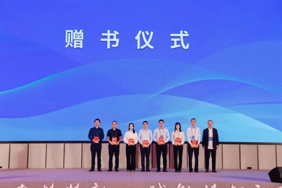 圖為董瀚向參會行業青年才俊代表贈書